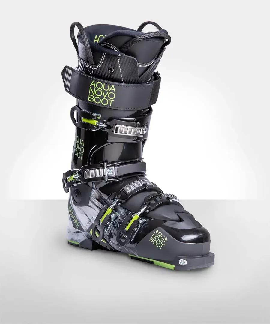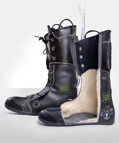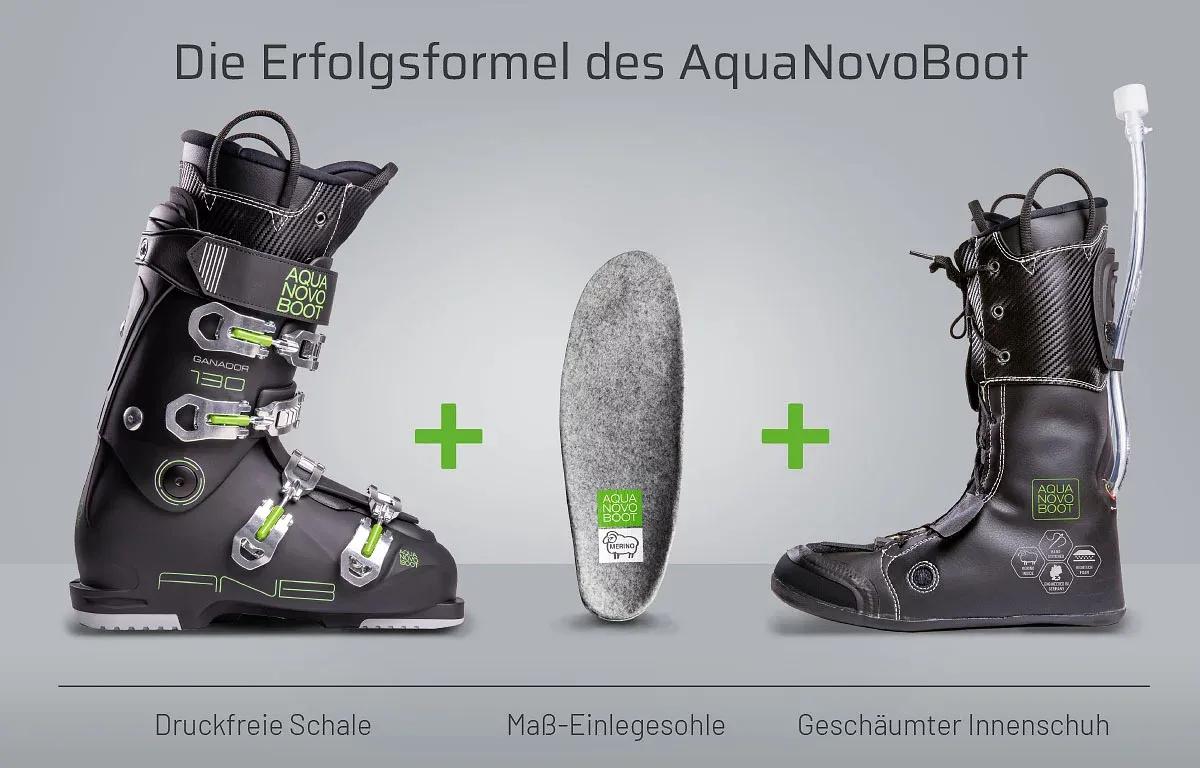 Der geschäumte AquaNovoBoot-Innenschuh ist auf dem Skischuh-Markt einzigartig. Stabilität, Sportlichkeit und Komfort konnten erstmals vereint werden. Für eine erstklassige Passform sorgt eine Thermoeinlage. Sie ist mit dem Innenschuh nahtlos verbunden. Dies macht eine spezielle Technik, das so genannte „Strobeln“, möglich. Dadurch hat der AquaNovoBoot-Innenschuh keine harten Kanten, Unebenheiten oder störende Wülste. Auch die komfortable, individuell anpassbare Zunge ist nahtlos angefertigt. Diese Eigenschaften machen den AquaNovoBoot zum perfekten Skischuh nach Maß.