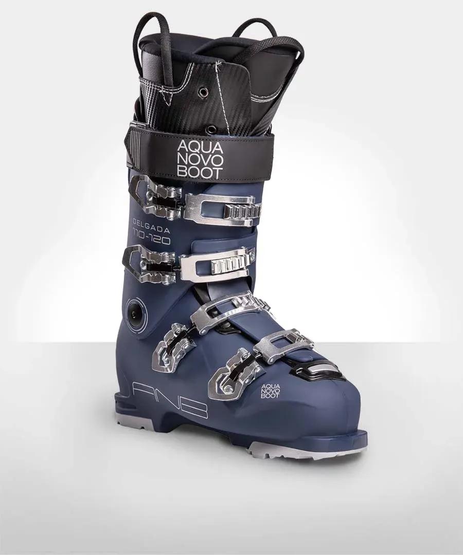 Somit sorgt der Delgada für eine sensationelle Kraftübertragung auf die Kante des Skis und eine völlig neues Fahrerlebnis für Sportlerinnen und Sportler mit sehr schlanken Füßen und Fesseln. Der Härtegrad ist zwischen Flex 110 und Flex 120 einstellbar. Wie bei jedem AquaNovoBoot ist die im Silikon-Sandbett maßangefertigte 3D-Einlegesohle im Preis inklusive.